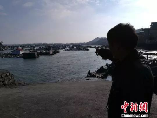 58岁的肖车明站在码头上,手指向不远处的自家渔排,对今后的日子充满无奈。 陈龙山摄