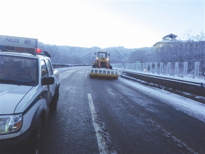 8日早上5点开始,高速交警上路巡逻,雅西高速公路公司开展了两轮除冰除雪工作。“前面用铲子铲,后面撒融雪剂,中间就用破冰车一滚,破冰车还带有铲子,这样除雪的效率特别高。”雅西高速公司路安部经理吴焕先介绍,今年他们首次购置了一台破冰车,“比除雪车威力大,除雪车铲不动的地方就用破冰车。”