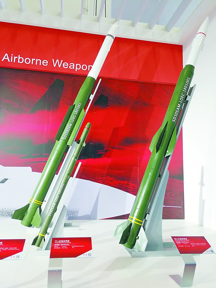 图片说明:右侧导弹即为首次亮相珠海航展的SD-30防空导弹。