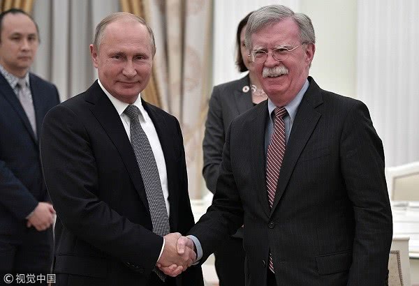 俄罗斯总统普京和美国家安全顾问博尔顿(视觉中国)