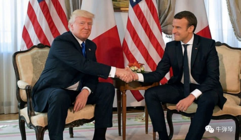 今年4月,马克龙访问美国,特朗普又是私人晚宴,又是白宫国宴,又是国会演讲,全套国事访问+规格招待。