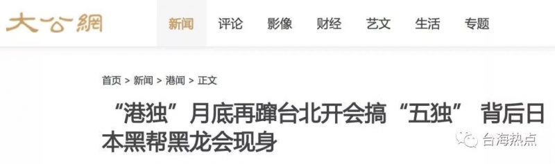 因鼓吹“港独”被港府依法取缔的“香港民族党”,其召集人陈浩天日前被爆正与日本黑帮“黑龙会”头目田中健之秘密联络,而田中健之的名字也出现在此次“台北分裂大会”的受邀名单中。