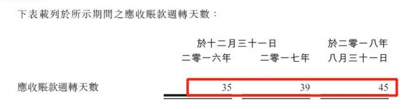 资料显示,集团应收账款周转天数在不到两年的时间里增长了 10天,由2016年的35天增至目前的45天。此外,随着周转天数的延长,集团逾期账款的比例也逐渐增高。