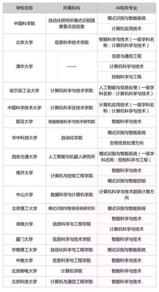 我们可以来看看部分高校(含中科院计算机所)人工智能专业,希望可以得出中国未来三年产出的AI人才的专业和大致数量,具体情况如下: