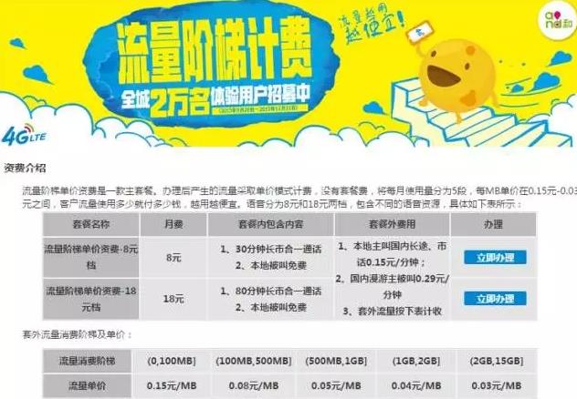 事实上,中国移动早在2015年就曾推出过流量阶梯单价资费套餐,当时的资费分为8/18元两档,含30/80分钟国内通话,超出后国内主叫0.15元/分钟,国内被叫免费,流量0-100MB(含)按0.15元/MB,100-500MB(含)按0.08元/MB,500MB-1GB(含)按0.05元/MB,1-2GB(含)按0.04元/MB,2-15GB(含)按0.03元/MB。