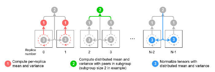 作者通过对几个计算节点组成的子节点做分布式的批归一化来实现对 BN 这一过程的增强。具体算法如图所示: