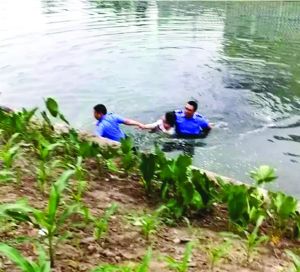 沈银亮和李金峰把女孩从河里救上来