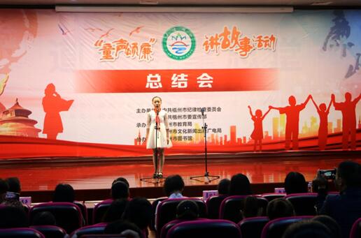 11月2日,梧州市“童声颂廉”讲故事活动总结会上, 学生代表进行成果交流。