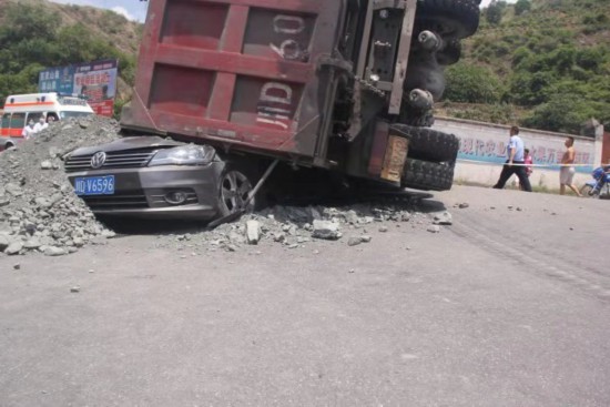 事故基本情况:2018年6月21日13时20分许,攀枝花盐边县境内,驾驶人凌某驾驶川D60962重型自卸货车载运矿石废料行至省道310线205km+990m岔口处时,遇由王某驾驶的川DV6596小型轿车左转弯驶入省道310线,凌某往右侧打方向避让,车辆往其左侧侧翻,压在川DV6596小型轿车车顶,矿石废料倾倒将川DV6596小型轿车埋压,造成轿车内6人死亡。