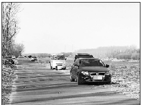 11月27日,记者分别走访了潮白河、运潮减河,发现沿岸有许多垂钓爱好者,他们多自驾前往,将车辆停放在河岸边。