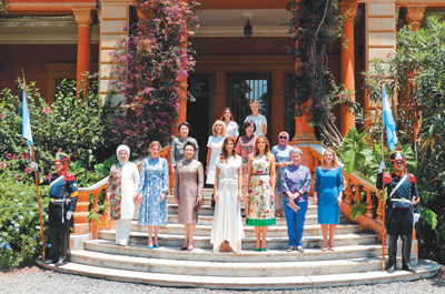 当地时间11月30日上午,应阿根廷总统夫人阿瓦达邀请,国家主席习近平夫人彭丽媛和出席二十国集团领导人布宜诺斯艾利斯峰会的部分国家领导人配偶共同参观奥坎波故居。这是彭丽媛同部分国家领导人配偶在奥坎波故居前合影。 |