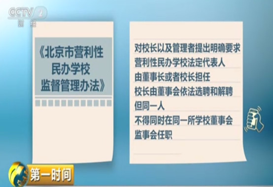 (央视财经《第一时间》)近日,北京市印发了《北京市营利性民办学校监督管理办法》和《北京市民办学校分类登记办法》,对民办学校教育教学、信息公开等多方面设立新规。