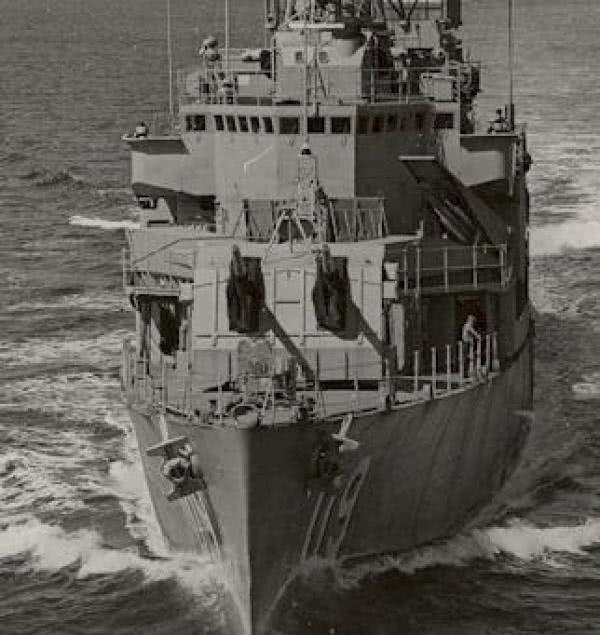 伊朗王国时期美国“基林”级驱逐舰上安装的“棺材型”发射器,注意图中左舷的“棺材盖”打开,露出了里面的“标准1”导弹