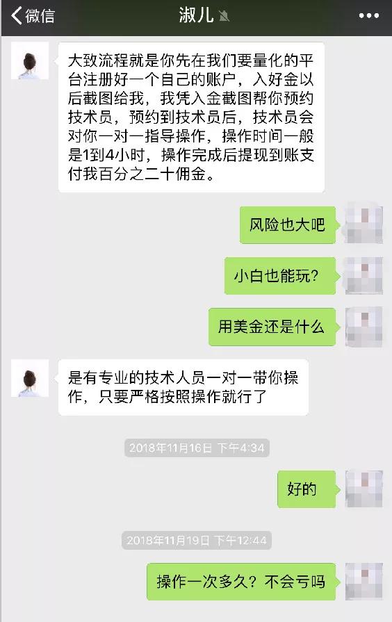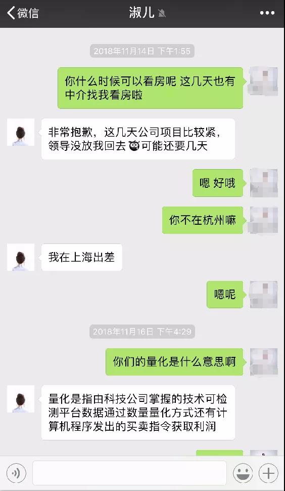 我向“淑儿”了解了一些他们的量化交易操作,但她应该是看出来我没有意向,就把我给屏蔽了。