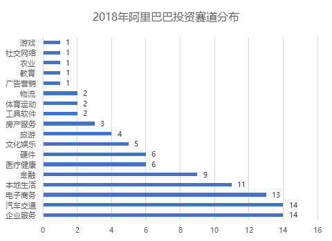 企业服务是阿里巴巴最重视、投资笔数最多的赛道,其在 2018 年已经出手了 14 次,投资的细分领域包括行业信息化及解决方案、财务税务、黑科技及前沿技术、人力资源、销售营销等。