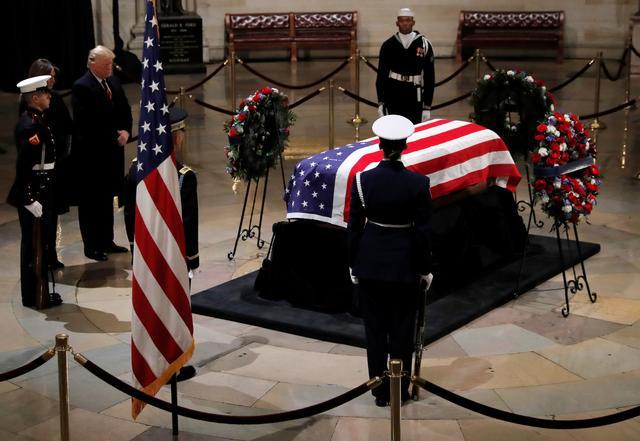 国会山,现任总统特朗普出席了布什总统的葬礼 图源:国防部