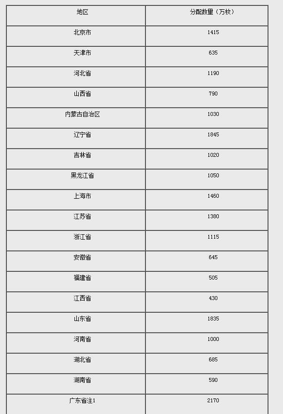 3.中国人民银行可能根据各地预约情况对各省、自治区、直辖市的分配数量进行调整,调整结果将另行公布。
