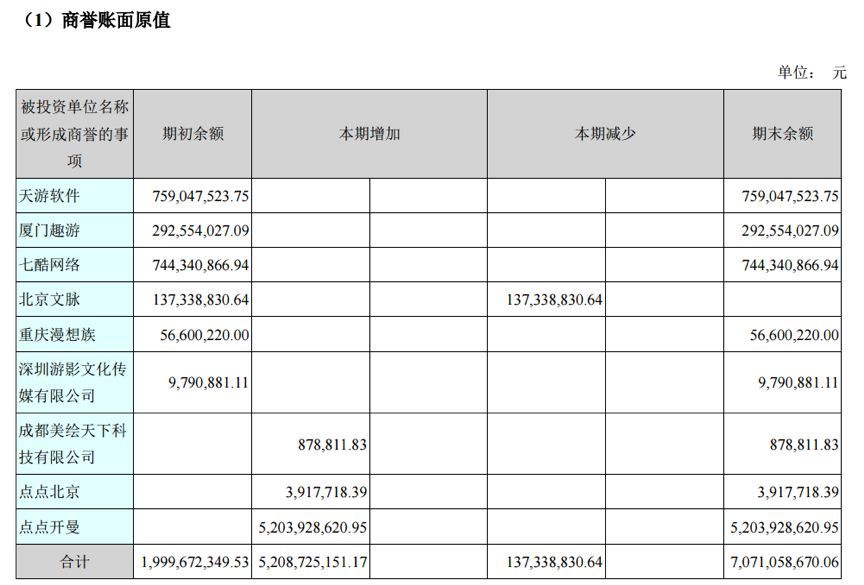 另外,2014年以来,世纪华通陆续收购了天游软件、七酷网络、点点开曼等多家游戏公司,持续的收购并表,世纪华通此前的账面也已经积累了大量的商誉。