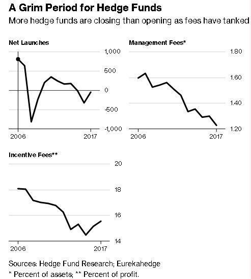 这只是华为街中年跳槽的一个缩影。现在的金融行业越来越像大数据挖掘,自动化交易方向转变,对冲基金的管理费用又高,很多分析师从基础的案头工作(paper work)到组建投资组合(portfolio)全包,这也反映了对冲基金的前景黯淡。过去3年里,倒闭的对冲基金数量比新开的要多400多家。