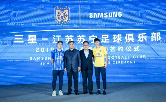 2018年12月6日,三星电子与苏宁在南京正式达成战略合作伙伴关系,并就三星电子赞助江苏苏宁足球俱乐部举行了赞助签约仪式。通过此次签约,三星电子将在2019- 2021赛季成为江苏苏宁足球俱乐部的顶级赞助商,并获得球衣的胸前和背后广告。苏宁将士将身披印有“三星(Samsung)”标志的全新战袍,征战未来三个赛季的所有赛事。