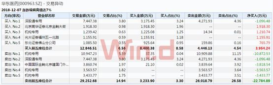 三机构席位卖出华东医药1.79亿元,深股通卖出4272万元并买入3175万元。