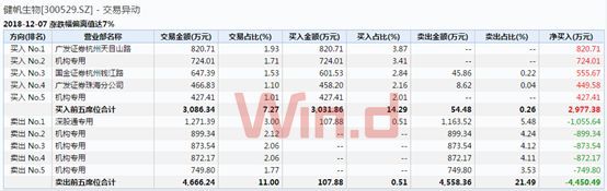 四机构席位卖出健帆生物3395万元,深股通买入107万元并卖出1163万元。