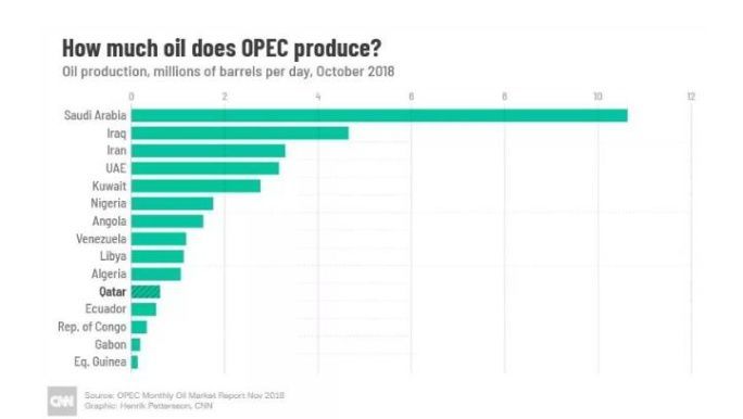 12月3日,卡塔尔宣布,将于2019年1月1日起退出石油输出国组织(欧佩克)。能源事务国务大臣萨阿德?卡比说,卡塔尔将继续扩大天然气生产,以确保卡塔尔的全球天然气生产大国和清洁能源出口大国地位。