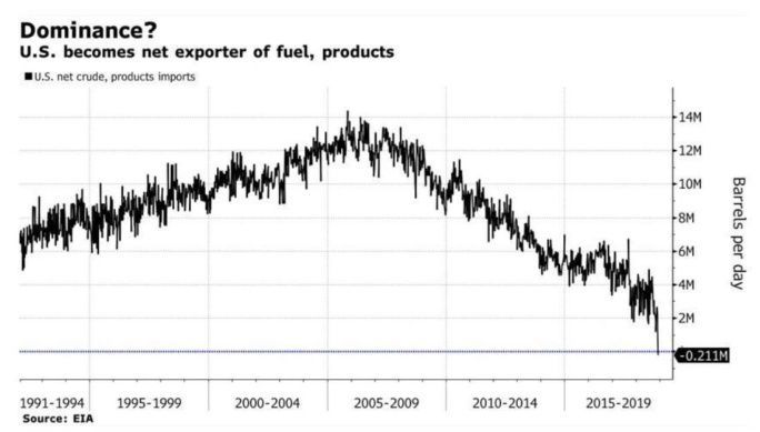 EIA “官宣”美国自上周开始成为原油净出口国和精炼油出口国,这是近75年来美国首次真正意义上实现“能源独立”。