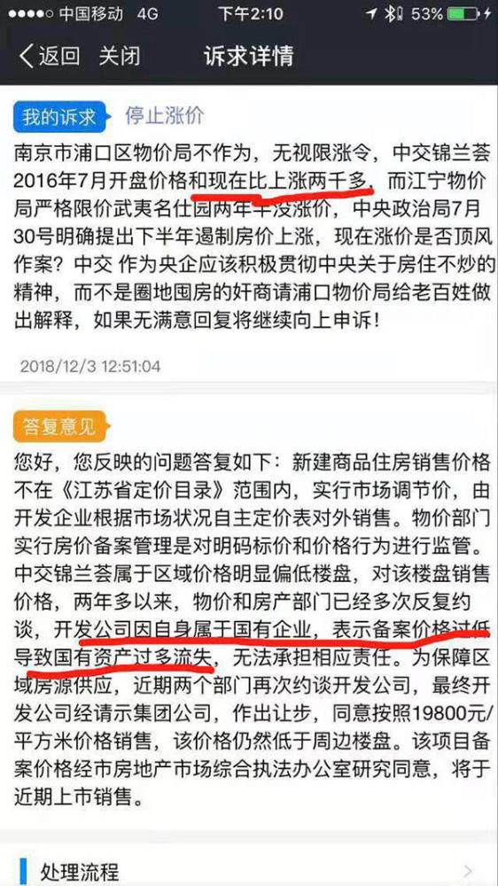 有买房人将此异议诉至南京12345政务服务热线,官方回复称,两年多以来,物价和房产部门已经多次反复约谈,上述楼盘开发公司因自身属于国有企业,表示“备案价格过低导致国有资产过多流失”,无法承担相应责任。