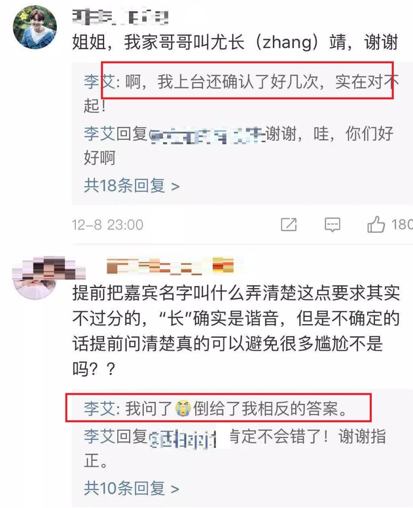 其次主持人在与男团进行互动采访时,将成员尤长靖的名字中的“zhang”念成了“chang”。在粉丝问责主持人时,主持人回应是主办方给的资料出错。念对他人名字是基本的礼仪,盛典上却出现了这种低级错误,也难怪粉丝生气了。