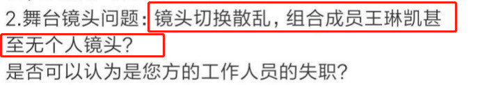 除此之外,舞台表演时镜头切换也很散乱,不仅导致舞台效果不佳,甚至个别成员连镜头都没有。