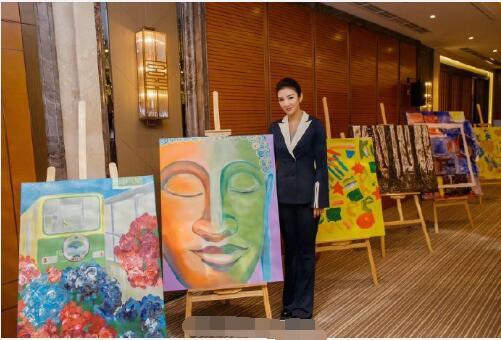 黄奕在拍卖会与画作合影,妥妥的霸道女总裁范。