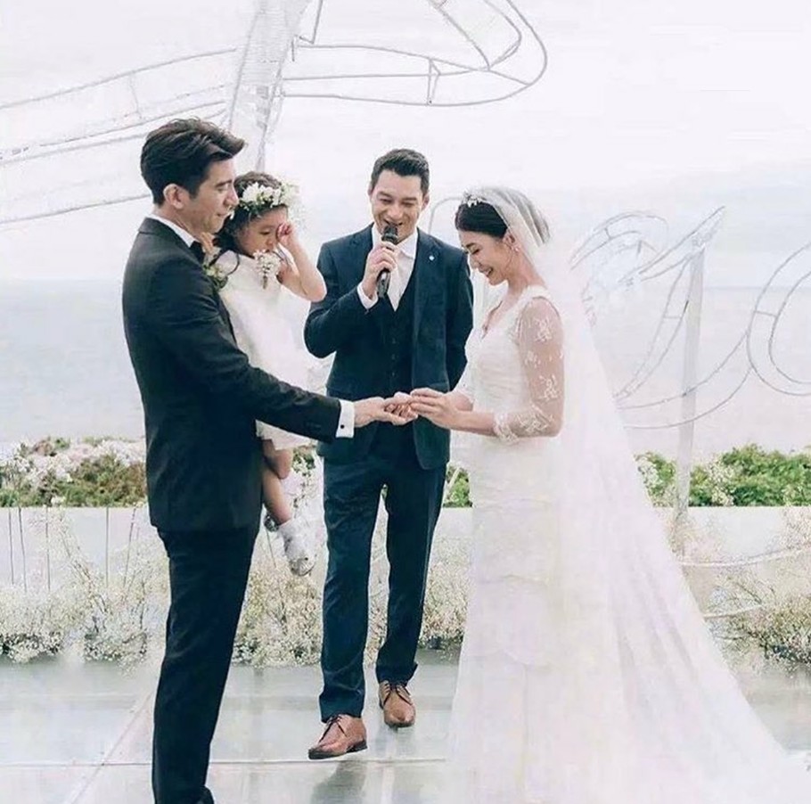 贾静雯在婚礼上说爱的誓言的时候,也哭着对修杰楷说“我也谢谢你对我家里面的照顾,更谢谢你对我大女儿的爱!”