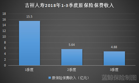 分别来看,首先,数据显示,2018年前3个季度,吉祥人寿原保险保费收入累计为26.01亿元,同比收缩49.85%。从单个季度来看,2018年1-3季度原保费收入分别为 15.5亿元、5.64亿元、4.88亿元。