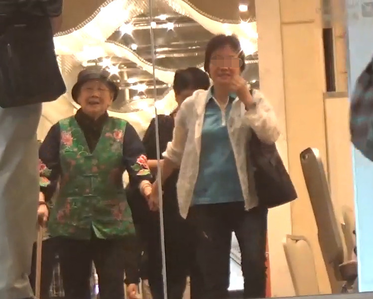 而梅妈随后则和亲友一起离开,有一位年长的女士牵着她的手走出酒楼,从梅妈的脸上我们就能看到她是有多开心了。不知道她这么开心是不是补办寿宴的钱批下来呢?