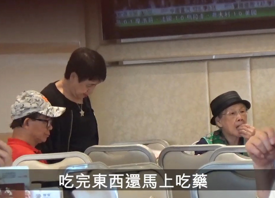 原来当天梅妈是约上儿子梅启明喝茶啊,从照片看到他们母子俩不是一起坐着的。梅妈当天胃口很不错,吃完东西后马上就吃药了,而梅启明在聚餐上并没有说太多话。