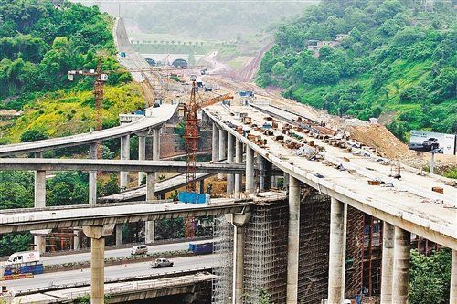 与普通桥梁不同,黄桷湾立交桥的修建是要在既有道路正常通车的同时进行的,在施工中,对于通行车辆不能限高,不能限宽,也不能限速。此外,它还地处冲沟,地形高差接近50米,这又增加了建设难度。