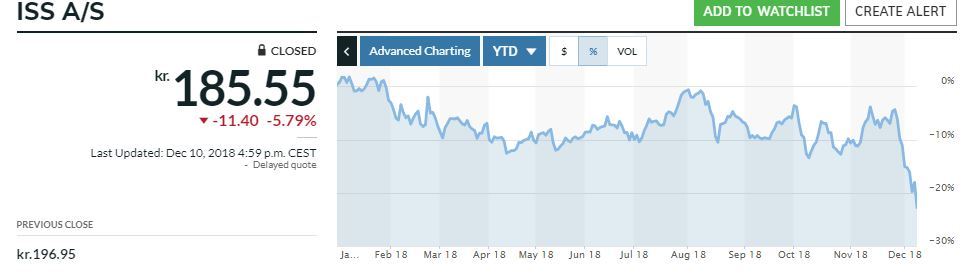 不过,今年前九个月,公司的未经调整税前利润同比深跌55%,股价自11月中旬以来重挫,上周触及2015年以来最低,今年以来累跌近20%,引发对冲基金大举做空。据彭博社报道,主流投行高盛曾在11月建议其客户开始卖出ISS股份,因担心公司前景不佳。