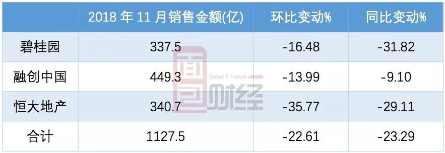 原标题:房企巨头的初冬 恒大领衔 三巨头单月销售同比锐减300亿