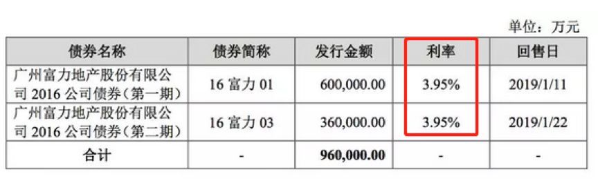 如上图所示,2019年到期回售的相应债券利率仅有3.95%,而富力地产此次发行的债券利率已上升至6.58%,利率上升了2.63个百分点。