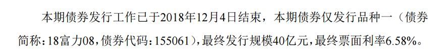 今年11月底富力地产发布公告称,将公开发行不超过40亿元的公司债券,而此次募集资金扣除发行费用后,拟全部用于偿付2019年公司已发行公司债券的到期回售部分。