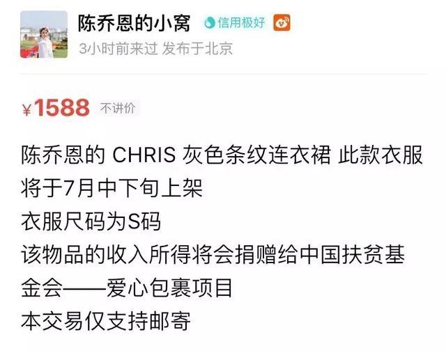 明星在闲置方面总会有公益的融入,这种融合会对粉丝产生一种良性引导。陈乔恩在闲鱼的每一件宝贝描述中都会特别注明“该物品收入所得将会捐赠给中国扶贫基金会”,而粉丝在购买了陈乔恩的闲置物品之后,也表示自己已经是第二次“跟着乔恩做公益”。粉丝既买到了自己心仪的物品,同时也支持了公益事业。而陈乔恩也因为长期以来对于闲置事业的管理,被网友评价“人美心善”。