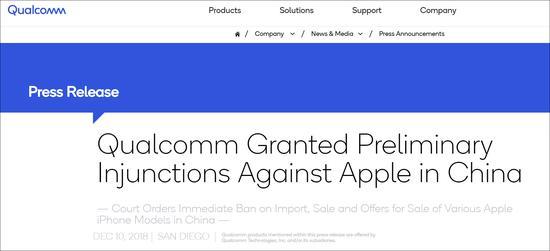 苹果还称,“试图禁售我们的产品是高通公司的又一绝望举措,该公司的违法行为正受到世界各地监管者的调查。高通公司正在就他们以前从未提出过的三项专利提出主张,包括一项已经失效的专利,我们会通过法院寻求所有的法律途径。”