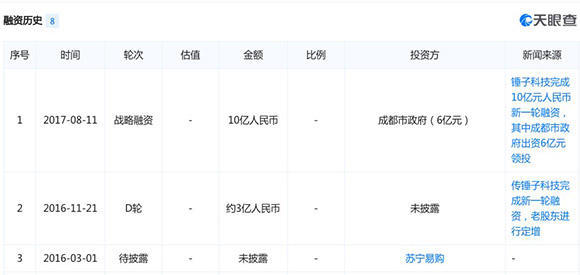 此时距离锤子科技完成上一轮融资已经过去一年时间。2017年8月,罗永浩透露锤子科技已完成接近10亿元融资,之后被媒体挖出有6亿元来自于成都市政府的投资。