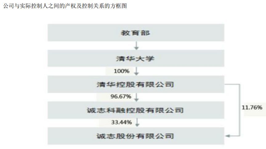 根据公开资料,诚志股份是清华大学控股的上市公司,截止2018年三季报,其通过清华控股直接及间接控制公司45.2%股权。以下为公司2017年年报中披露的股权结构图: