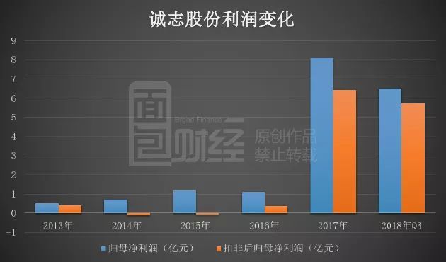 在南京诚志并表的首个完整年度,也就是2017年,上市公司净利润8.09亿元,南京诚志净利润约9.79亿元。也就是说,如果扣除南京诚志利润,公司其他业务为亏损。