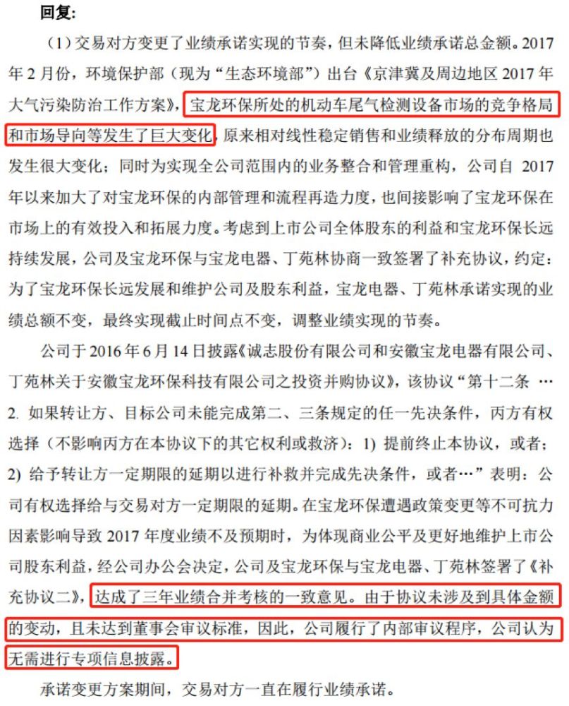 在被交易所问询之后,2018年7月26日,诚志股份召开董事会会议和监事会会议补充履行相关审议程序,并于2018年8月20日召开股东大会审议通过业绩承诺变更事项。