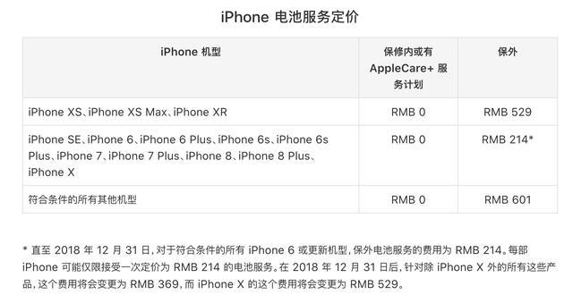 近日,苹果更新了官网电池服务详情页的信息,iPhone 的电池维修服务即将涨价,2018 年 12 月 31 日后,大部分 iPhone 机型的电池服务定价会从 214 元增至 369 元,而 iPhone X 的电池服务价格更是增加到了 529 元。