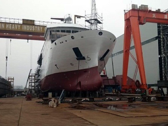 据了解,该船是在巴基斯坦和中国的共同合作下完成的,是这家中国民间企业首次与巴基斯坦军方合作。2016年7月,生产商大津重工在与国内外众多承包商的激烈角逐中,得到巴基斯坦军方的青睐,并一举中标;2017年5月,大津重工与巴基斯坦国防部签署了设计、采购、施工的总承包合同。自2018年2月起,大津重工得到了巴基斯坦军方的支持与帮助,驻厂工程师、验船师进行现场指导与配合,驻厂项目组成员对此严格把关,在各方共同努力下,这艘新型调查船顺利完成接水目标。