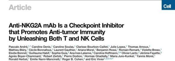 (来源:Anti-NKG2A mAb Is a Checkpoint Inhibitor that Promotes Anti-tumor Immunity by Unleashing Both T and NK Cells)